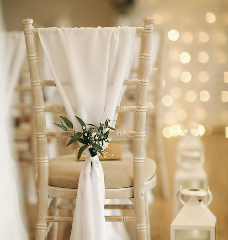 Optional upgrade: Add an ivory seat pad and sash for just an extra 50p per chair, giving your setup an added touch of luxury.